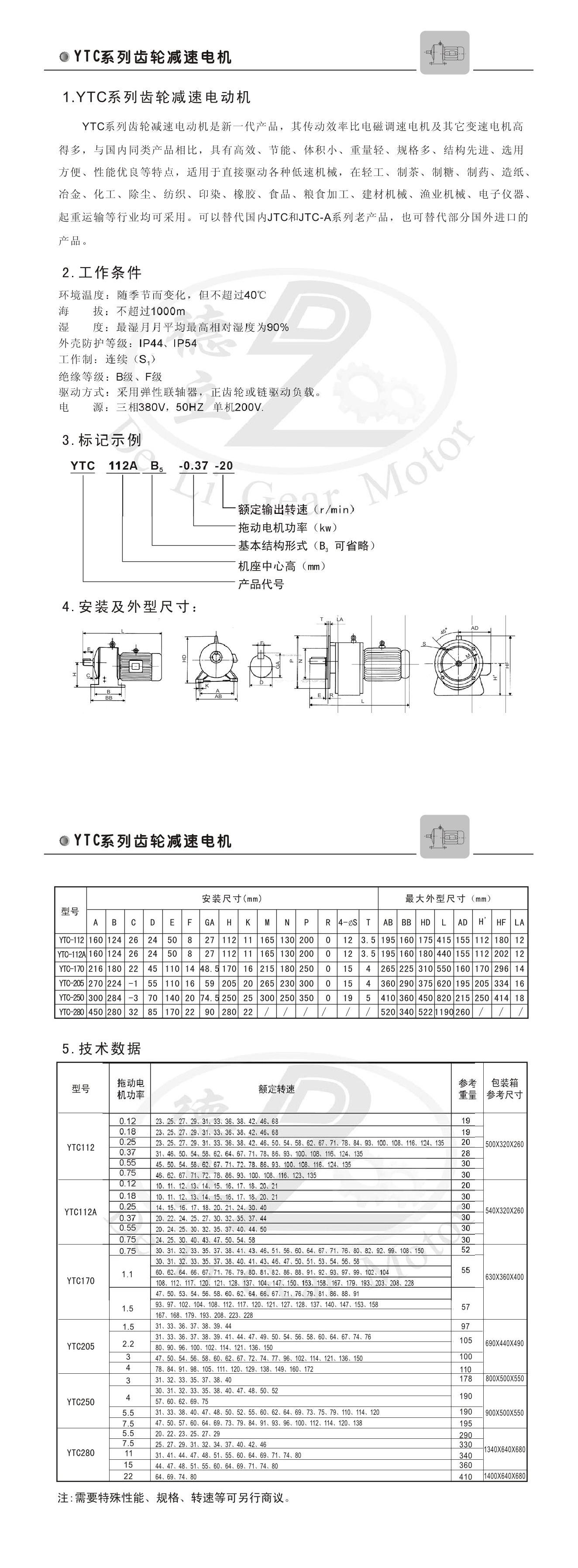 YTC齒輪減速電機系列